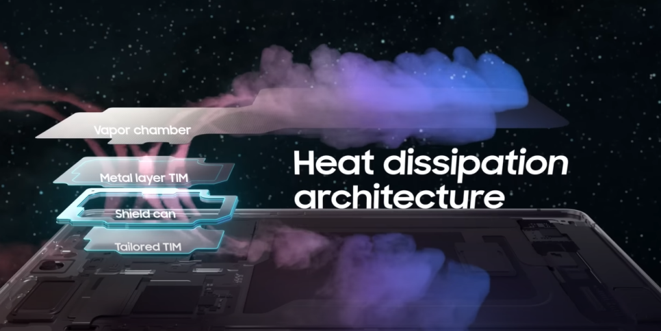 최고 라인업답게 가장 큰 베이퍼 챔버 크기를 자랑하는데 갤럭시 S25 울트라에 적용된 베이퍼 챔버는 전작 대비 45% 증가한 크기라고 합니다. 또한 TIM으로 명명된 새로운 열전도 소재(Thermal Interface Material)*도 적용되어 보다 효율적인 방열 시스템을 갖췄습니다.