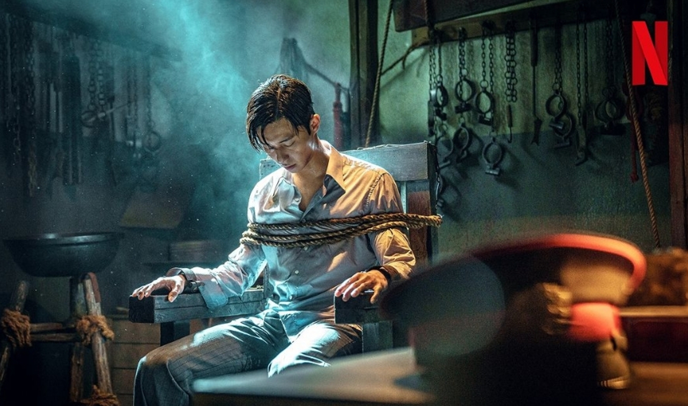 혹자는 이 부분을 크게 단점이라 생각지 않을 수 있습니다. 하지만 위 말씀드린 부분처럼 경성 크리처는 한정된 장소에서 주된 이야기가 이어져 나갑니다. 그렇기에 답답 함이 느껴지는데 더욱이 조명까지 많이 어둡게 나오니 그런 답답함이 한층 더 더해진다고 느껴졌습니다. 그로 인해 보는 내내 조금 더 피로도를 느끼게 되었습니다. 드라마가 영화보다 좋은 점은 러닝 타임의 압박에서 벗어나 이야기와 배경을 좀 더 다채롭고 구체적으로 구성할 수 있는 점인데, 이런 장점을 잘 활용하지 못한 느낌이 들었습니다.