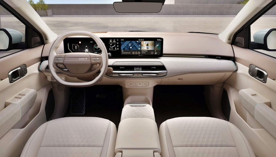 EV4는 12.3인치 클러스터, 5인치 공조, 12.3인치 인포테인먼트 시스템 등 3개의 화면이 이어지는 파노라믹 와이드 디스플레이를 통해 탑승객에게 차량 조작 버튼을 최적 배치해 편의성과 공간 활용성을 향상시켰다고 하는데요.