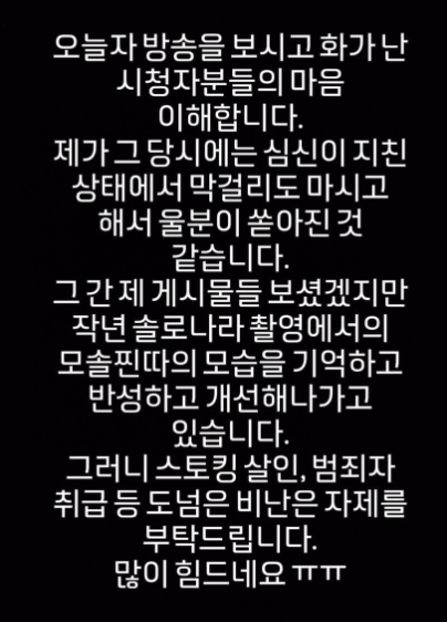 죄송하다고 사과글도 인스타에 올리기도 했었는데