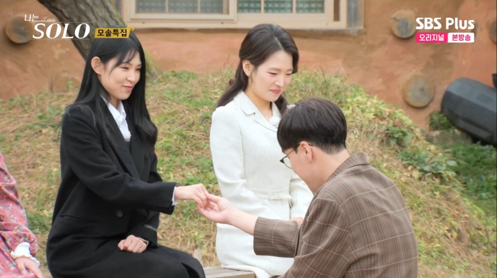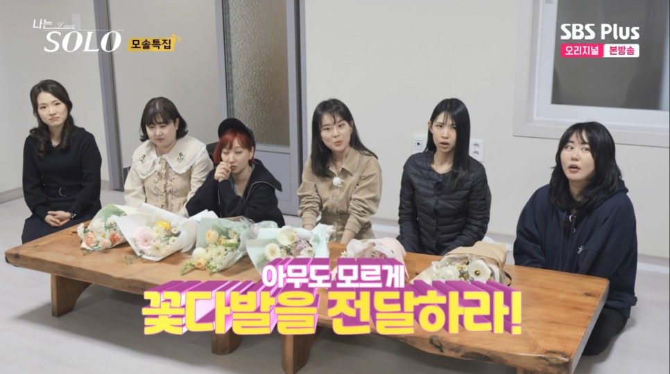 이 영철의 쌈을 시작으로 서로서로 쌈을 싸주며 화기애애한 분위기가 됩니다. 여기에 상철이 또 분위기 메이커로 영숙과 영자, 현숙의 호감을 삽니다. 옥순까지 해서 여자 넷한테 둘러싸여 예쁨(?)을 받는 상철입니다. 그리고 가가 음악이 나오는데요. 다음 주 여자 출연자들의 첫인상 선택이 펼쳐집니다. 아무도 모르게 꽃다발을 첫인상 그 남자한테 전달해야 하는 여성 출연자들입니다..