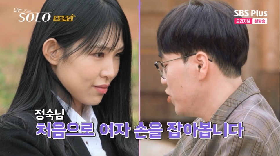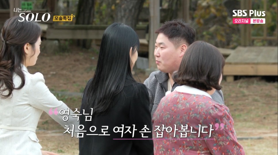 다음으로 시작부터 첫인상 선택이 펼쳐졌습니다. 모태솔로 특집인데... 첫인상 선택 방식이 손을 잡는 겁니다. 모솔들이니 처음부터 분위기 확 풀어주려고 하는 듯한 PD입니다. 먼저 고유영수의 선택은 영자입니다. 진짜 여자 손 처음 잡아봤다고 하는 영수입니다;; 정말 모솔이라고 느낀 것이 시선이 갈피를 잃은 영수입니다. 대체 어디에 눈을 두어야 하나 합니다. 영자도 마찬가지로 시선처리를 곤란해한 모솔특집입니다..