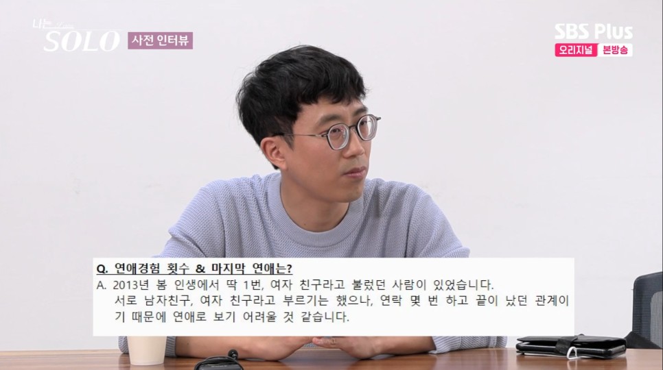 다음은 형사반장 이미지의 영철입니다. 과거 베이비영철을 보는 듯한 인상의 영철입니다. 이분의 경우 2021년에 인터뷰를 했다고 합니다. 2년 정도 지나서 포기하고 있었다고 했는데 연락이 와서 놀랐다고 합니다. 앞서 세 사람과 달리 연애 1~2번은 해봤다고 합니다. 처음은 고딩 때 50일, 다음은 20일이라고 합니다. 이러면 연애를 안 한 거죠... 보면 취업 후 일을 주말 없이 해서 연애할 시간이 없었던 거 같습니다. 12년 연애를 못해본, 사실상 모태솔로입니다..