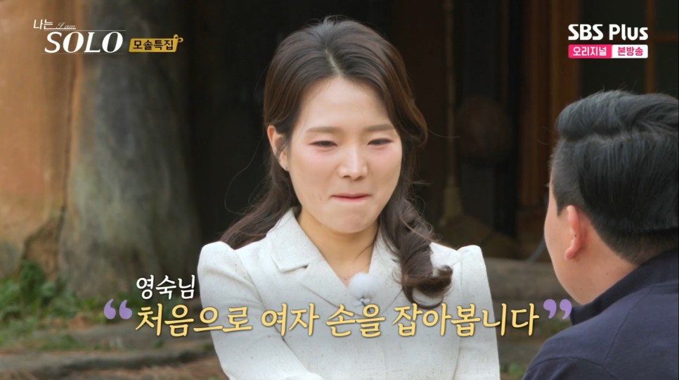 사과소년 영호는 영숙을 택합니다. 선택한 이유는 너무 예뻐서라고 합니다. 입장할 때 웨딩드레스 입고 촬영온 거 같은 기분이었다며 눈이 부셨다고 합니다. 영숙 역시 남자 손은 아빠 말고 처음 잡아봤다고 합니다. 특히 손을 이렇게 잡을 줄을 몰랐다며 당황했음을 말합니다. 의외로 영호는 아이컨택을 잘합니다. 눈이 예쁘다는 플러팅까지 순박한 얼굴로 자연스럽게 가합니다.