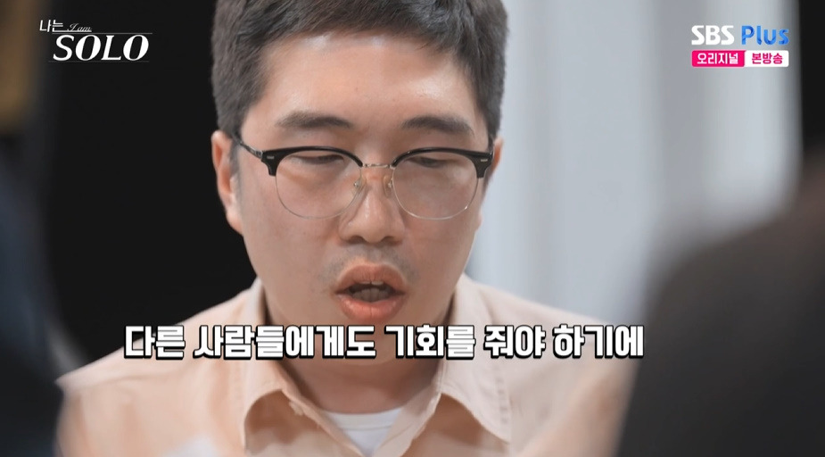 이어 그는 "오늘도 옥순에게 뛰어가려고 했는데 영수 형이 '공평하게 해'라고 하더라. 내가 다른 사람들에게도 기회를 줘야 하니 계속 눈치를 봤다. 내가 옥순이랑 이야기를 하면 옥순의 시간을 뺏으니 나는 또 이기적인 놈이 되는 거 같았고, 경쟁자들이 나를 미워할까 봐 신경이 쓰였다"라며 그동안 하지 못했던 말을 쏟아내기 시작했죠.