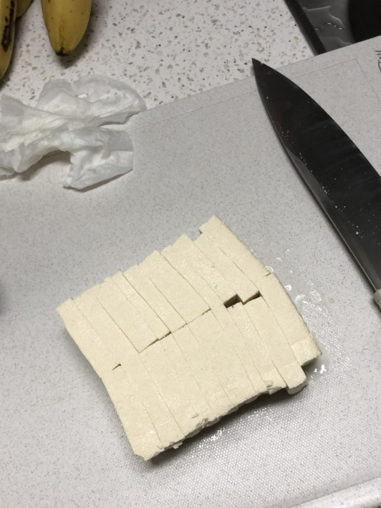 이렇게 열심히 준비했는데 아직도 구워지지 않은 나으 두부