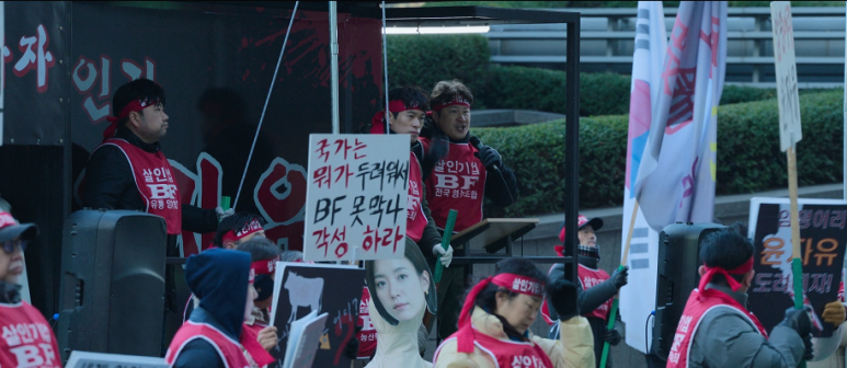 BF본사 앞에 있는 시위대들도 더욱 격해졌고 말이죠. 때문에 본사나 연구소에서 머물던 윤자유가 그리로 갈 수 없었기에, 변호사 정해든은 임시로 묵을 호텔 대관을 찾아보는데 이 역시도 연말이라… 결국 우채운은 자신의 집을 임시거처로 쓸 수 있도록 윤자유를 데려갑니다.