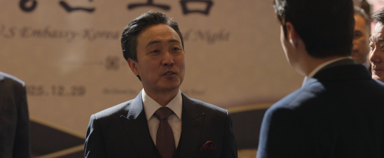 한편, 윤자유는 2025 주한미대사관 주체 송년 모임에 참석했는데요. 보니까 재계 거물들이 참석하는 자리인 듯한데, 무튼 그곳에서 윤자유는 작중 아마도 대한민국 재계 1위인 도슨그룹의 선우근 회장으로부터 어마무시한 제안을 받게 되는데요.