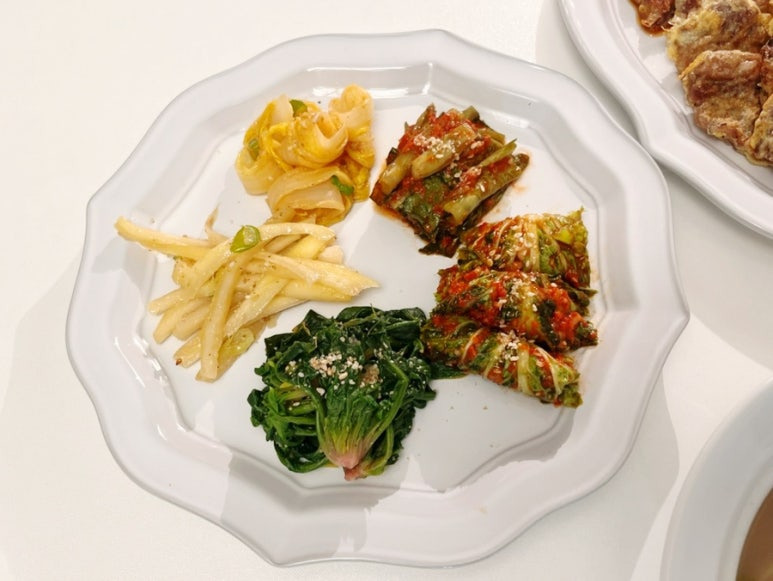 시금치나물, 도라지나물, 배춧잎나물, 갓김치, 봄동무침