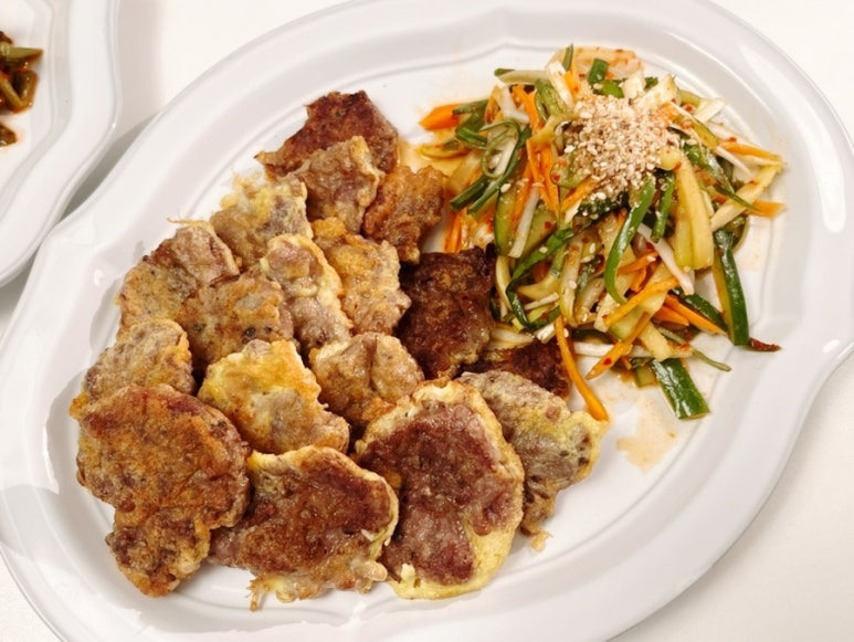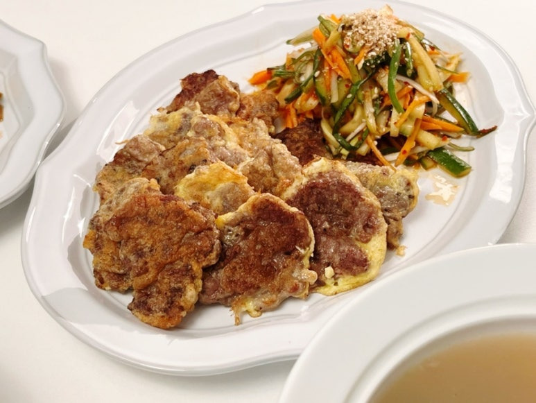 계란옷을 입히고 구워서 육전을 만들어 보았습니다.