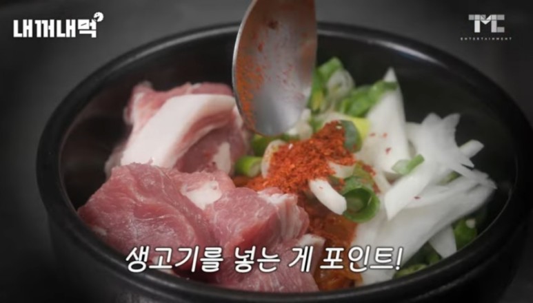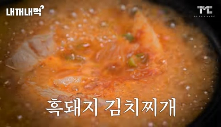 김치찌개에도 흑돼지 생고기 넣고 바로 끓여주네요.