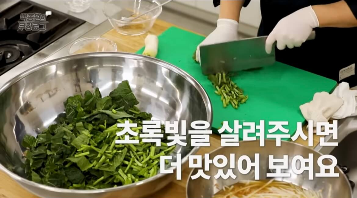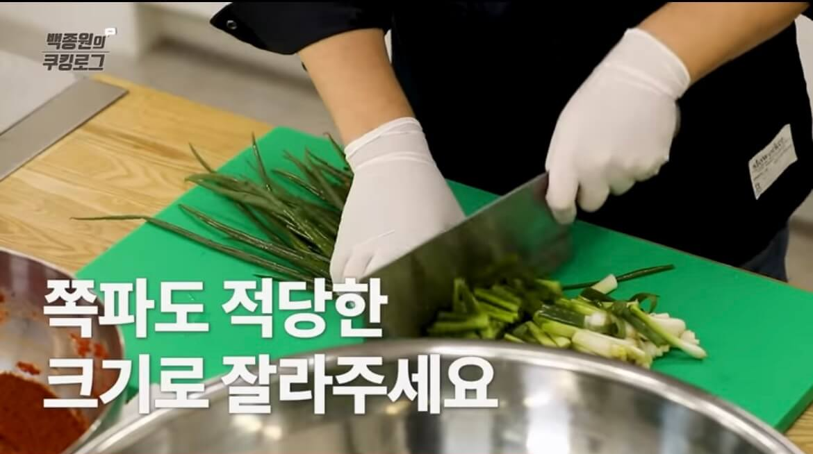 - 무청, 쪽파는 3cm 길이로 잘라 준비합니다.