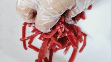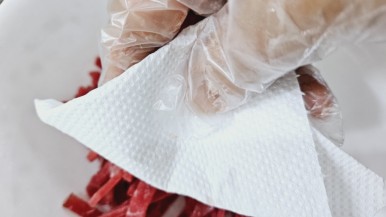 (1) 소고기의 핏물을 닦아 주세요.