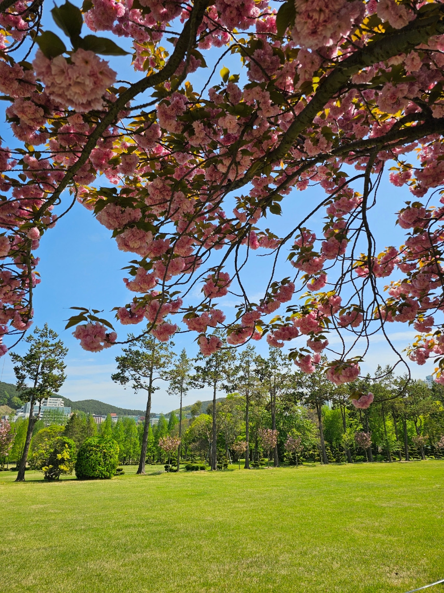 이번에 다녀오면서 좋았던 점은 일부 잔디 구간이 포토존으로 개방되어 있었다는 것. 평소에는 잔디 보호를 위해 출입이 제한되는데, 겹벚꽃 시즌을 맞아서인지 사진 촬영이 가능하도록 열린 공간이 있어서 더 여유롭게 즐길 수 있었다.