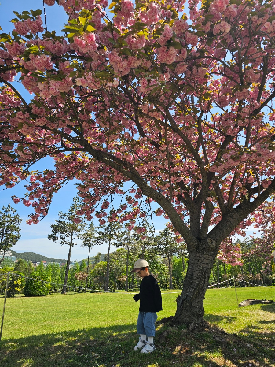 덕분에 꽃 아래에서 자연스럽게 앉거나 아이와 함께 사진 찍기에도 훨씬 수월했고, 겹벚꽃이 머리 위로 가득 채워지는 구도로 담을 수 있어서 예뻤다.