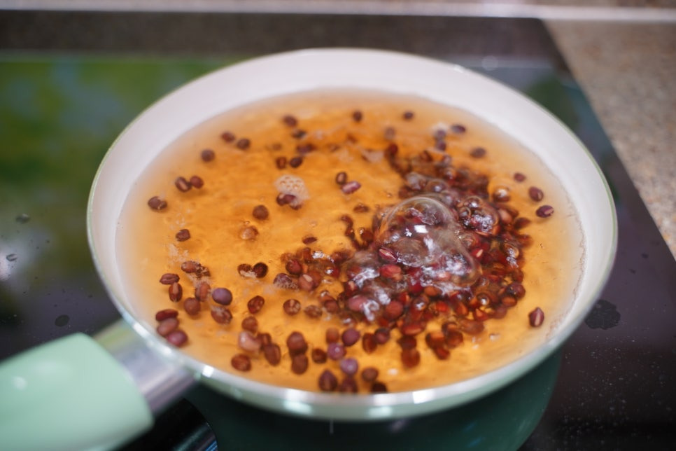 오곡밥 짓는 방법으로 콩은 물에 담가 불리고, 팥은 삶아줍니다.