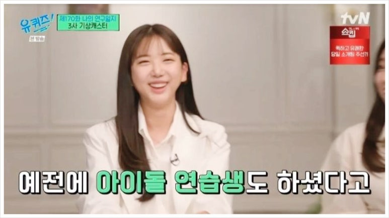 아이돌 준비를 위해 약 2년간 연습생 생활을 했으며, 당시 춤과 랩을 담당했다. 그러나 고된 다이어트와 극한의 생활도 인해 연습생을 그만두고 새로운 꿈을 찾아 기상캐스터의 길을 선택했다.