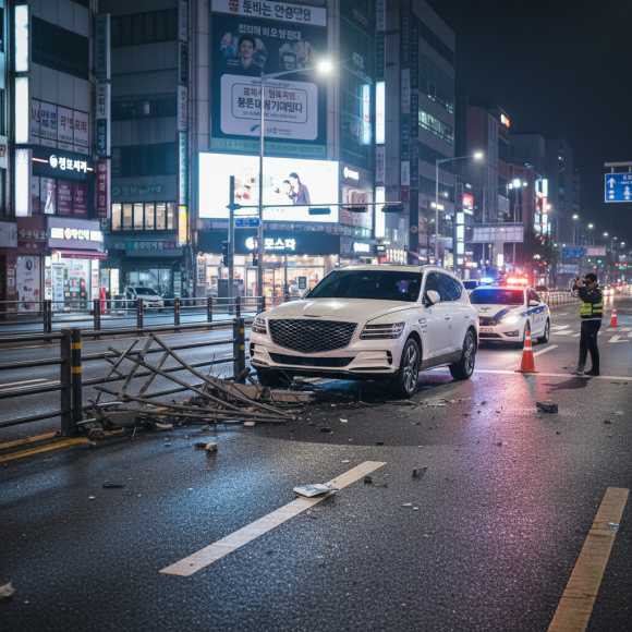 - CCTV 영상: 차량이 중앙분리대를 '쾅' 치고 도주하는 모습이 고스란히 포착.