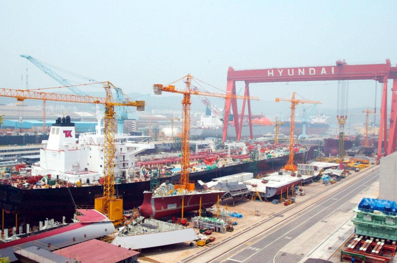 HD현대중공업 조선소 대형 선박 건조 현장