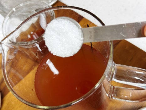 4. 생수와 팥 삶은 물을 섞어 소금 간을 한다.