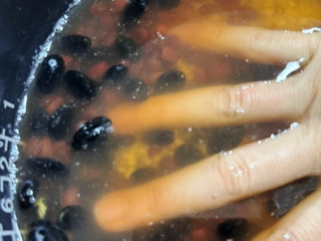 씻은 팥을 냄비에 넣고 끓이다 파르르 끓어오르면 그 물을 버리고, 다시 새 물을 받아 20분가량 끓여 준다.