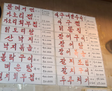 추천 메뉴: 물메기찜, 아구 내장 수육