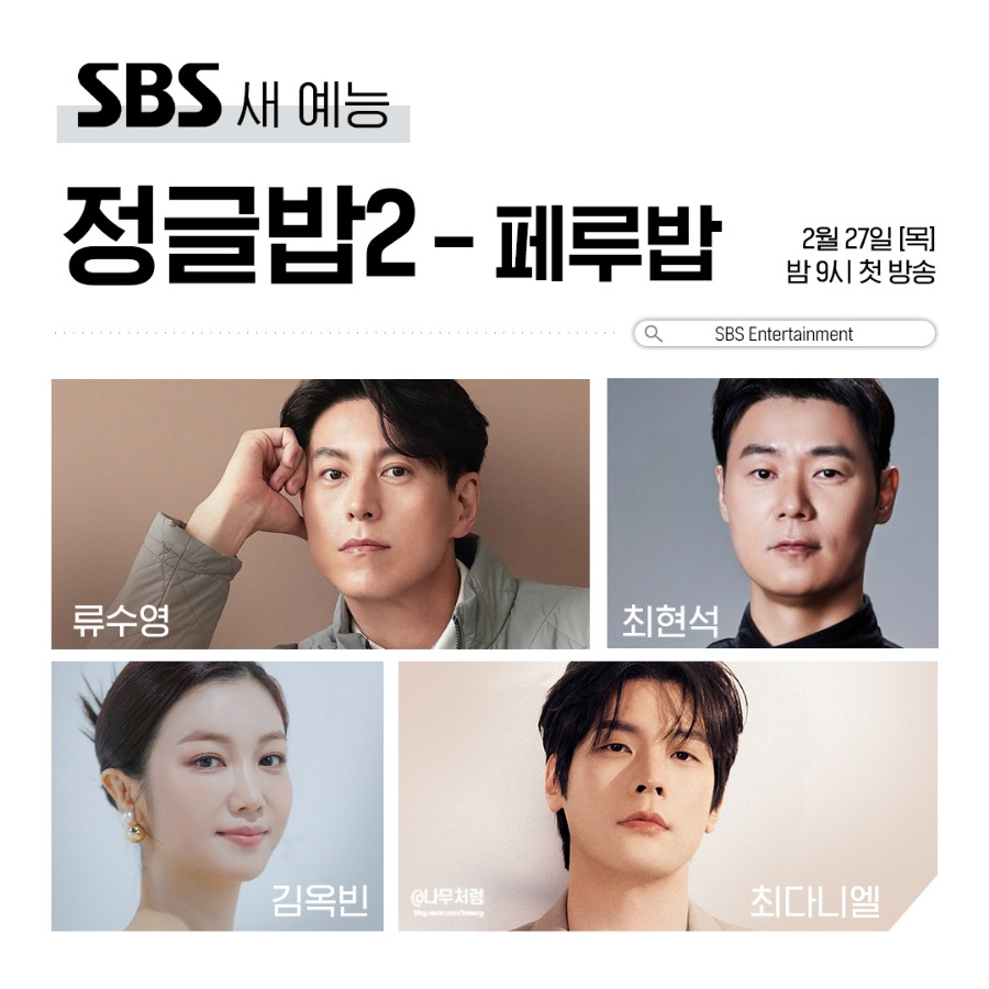 정글밥2 페루밥 카리브밥 출연진이 각각 다르다. 일단 류수영과 김옥빈은 둘 모두 나오고, 페루밥에는 최현석과 최다니엘이 나온다.