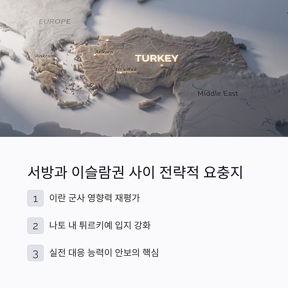 이번 격추 사건은 단순히 무기를 막아낸 것을 넘어 정치적으로도 아주 큰 의미가 있습니다. 튀르키예는 서방 국가들과 이슬람권 사이에서 전략적 요충지 역할을 하고 있기 때문이죠. 튀르키예 영공을 향한 공격이 무력화되면서 이란의 군사적 영향력에 대한 재평가가 이뤄질 가능성도 큽니다.