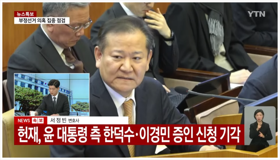 2월 11일, 헌법재판소는 윤석열 대통령 탄핵심판 7차 변론에서 대통령 측이 신청한 한덕수 국무총리와 이경민 국군방첩사령부 참모장의 증인 채택 요청을 기각했습니다. 재판부는 "필요성이 부족하다"는 이유를 들어 증인 신청을 받아들이지 않았습니다.