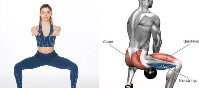 둔근, 대퇴직근, 내측광근에 자극을 주는 스쿼트로 허벅지 안쪽과 엉덩이 옆 라인과 둔근을 키우기에