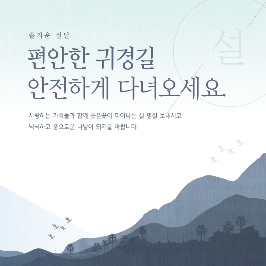 ㅇ 즐거운 설을 맞아 가정에 웃음과 기쁨이 가득하시길 기원합니다. 새해 복 많이 받으세요.