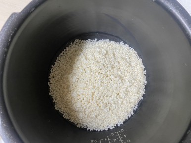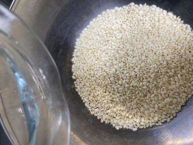 * 찹쌀을 씻어 물에 불려요.