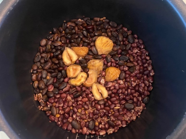 * 밤은 불린 거예요. 생밤을 넣어도 돼요.