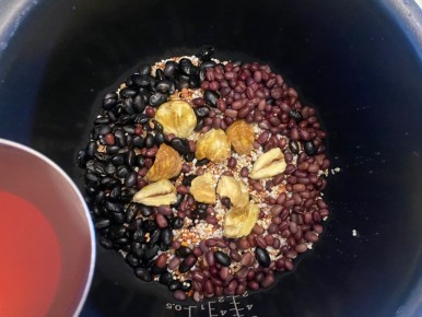 * 찹쌀, 잡곡,콩,팥,밤을 넣고 팥물을 3컵 넣었어요.