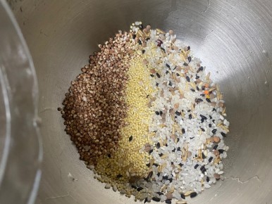 찹쌀 1.5컵, 맵쌀1/2컵, 수수 1/2컵, 기장 1/2컵