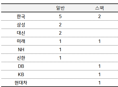 한국, 삼성, 대신, 미래, NH, KB 대부분 있을 것 같고,