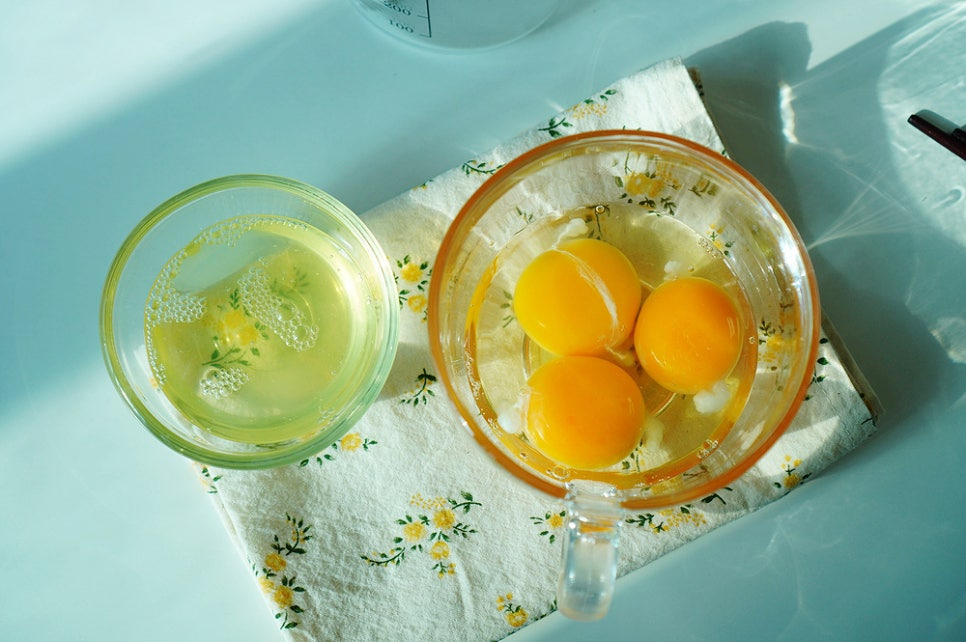 정도를 흰자, 노른자 분리 알끈 제거