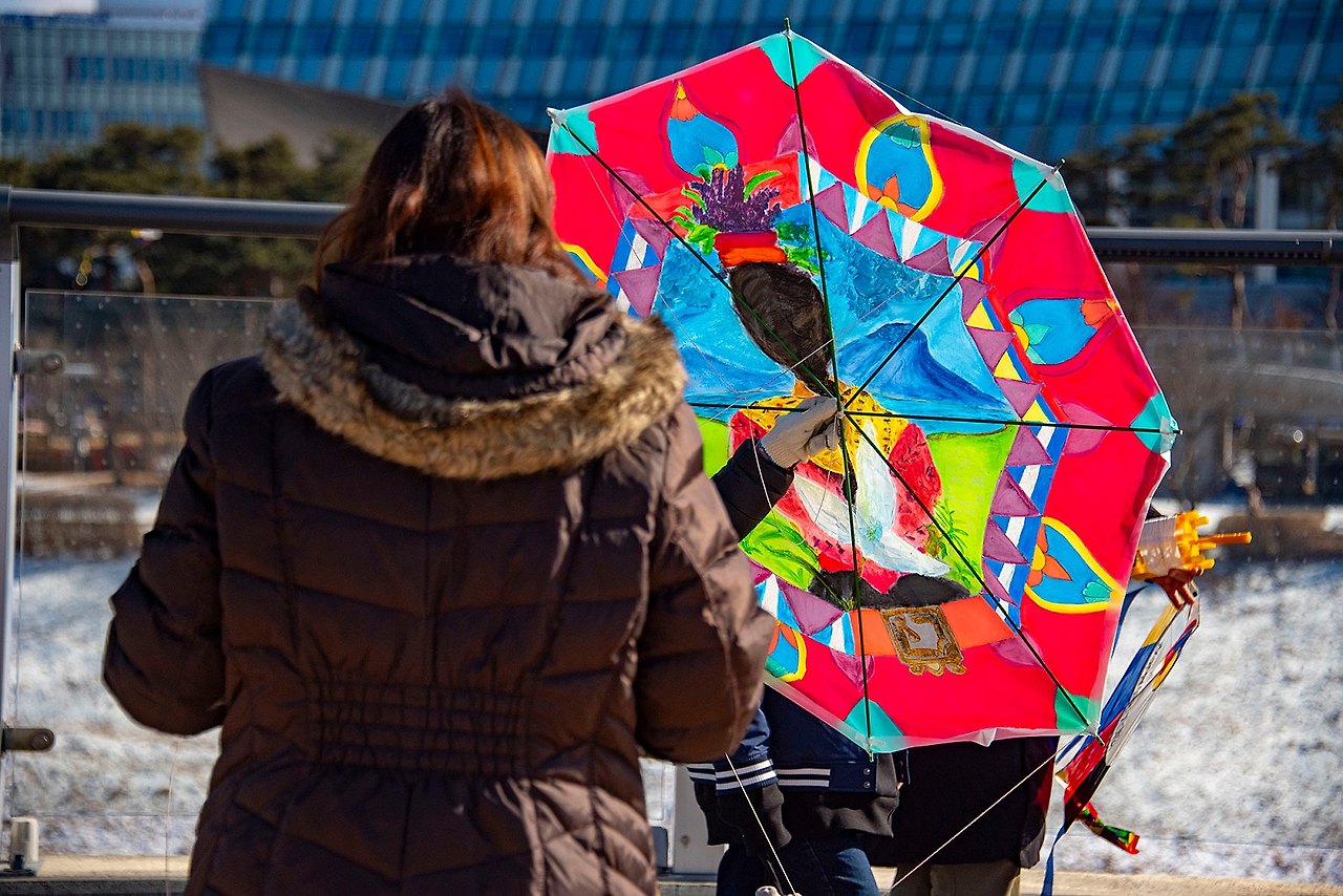 연날리기 대회가 진행되는 동안 이응다리 남측 광장에서는 전통문화 체험행사가 열렸습니다. 널뛰기, 제기차기, 투호, 죽마, 딱지치기, 구슬치기, 비사치기, 윷놀이 등 어린 시절 정월대보름을 맞아 즐겼던 놀이마당이 한 곳에서 펼쳐졌지요.