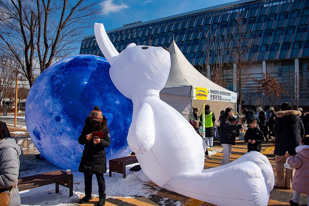 커다란 애드벌룬의 달 모양과 옥토끼에서 기념사진 촬영을 하는 모습도 정겨웠지요.
