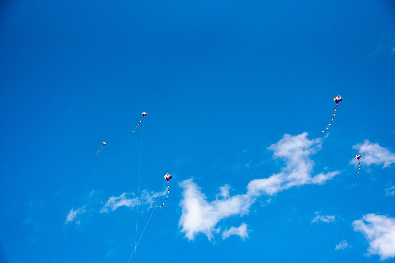 이날 따라 날씨가 참 좋았습니다. 맑게 갠 파란 하늘에 흰 구름이 두둥실, 바람까지 적당히 불어서 연날리기 최상의 조건입니다.