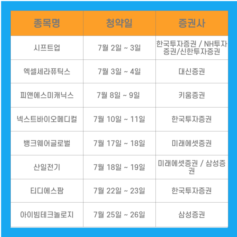 24년 6월에는 정말 다양한 공모주들이 있었는데요. 24년 7월에도 공모주들 꽤나 있습니다. 7월 공모주 일정과 정보에 대해서 한번 알아보도록 하겠습니다.