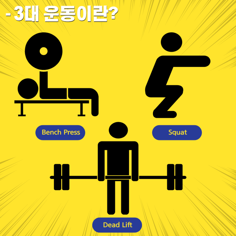 다음은 3대 운동인 스쿼트, 밴치프레스, 데드리프트에 대해 상세히 알아보겠습니다.
