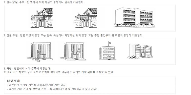 더 나아가서 국기 다는 위치도 알면 너무 좋을것 같은데요!