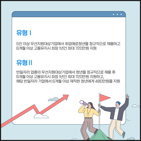 유형 2는 빈일자리 업종의 우선지원대상기업에서 정규직 채용 후 6개월 이상 고용을 유지할 경우