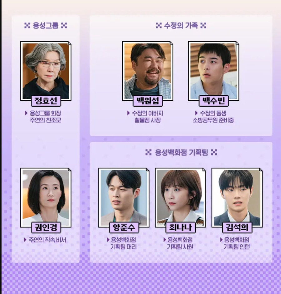 엄마 없이 가난한 철물점 딸로 자란 수정은 편견과 차별을 극복하기 위해 악바리처럼 노력했다. 한국대 입학 후 용성백화점에 입사해 최연소 기획팀장이 되었지만, 솔직하고 강단 있는 성격으로 본부장 킬러라는 별명을 얻었다. 수정은 새로 온 본부장에게서 과거 게임에서 만난 흑염룡 오빠의 기운을 느낀다.